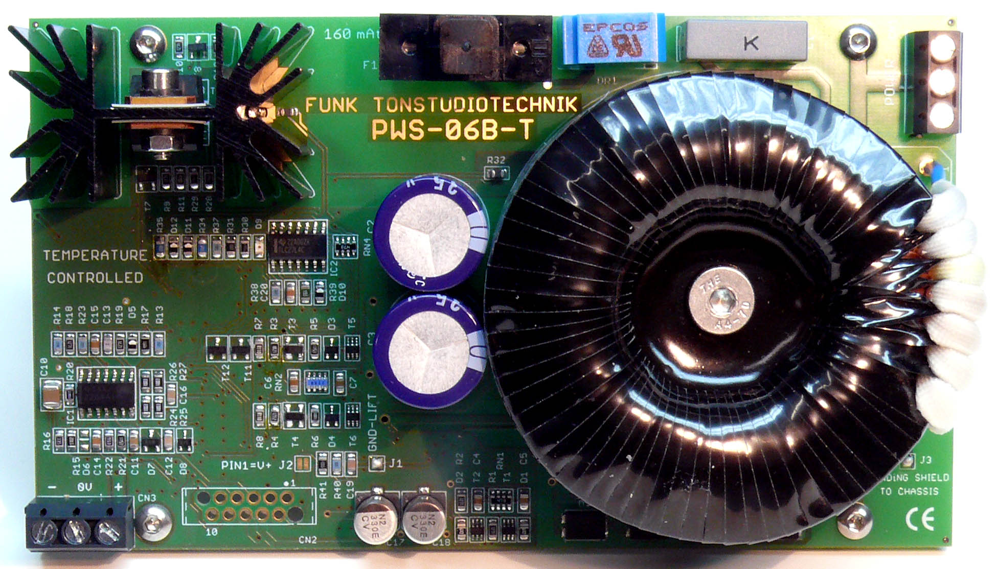 Netzfilter u. Primärsicherung bereits auf Platine integriert.